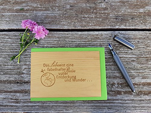 TOP QUALITÄT - echtes, edles, hochwertiges Holz, Innenseite feine Papierschicht, zum Beschriften. EINZIGARTIG - Holz ist ein Naturprodukt, daher ergibt sich bei jeder Karte ein einzigartiges Astbild, Maserung und Farbe. UNIVERSELL - Diese wunderschöne Klappkarte aus edlem und hochwertigem Holz können sie natürlich auch als Geschenkkarte, Einladungskarte oder Grußkarte problemlos verwenden.. PERFEKTES GESCHENK - Unsere Produkte sind als Geschenk für den Freund, die Freundin, den Mann, die Frau, den Geliebten, Ehemann und Ehefrau, für den Jahrestag, den Hochzeitstag, zur Verlobung, zum Einzug, für Kinder und Erwachsene, für frisch Verliebte oder ein altes Ehepaar, für Oma und Opa, für Papa und Mama, für jung und alt geeignet.. LIEFERUMFANG - Klappkarte mit Motiv in den Abmessungen 100mm x 150mm, inkl. farbigem C6 Umschlag.