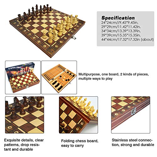 Schachspiel Schach Schachbrett Holz,Klappbar Reiseschach Schachbrett für Familie Geschenk Reisen ür Kinder und Erwachsene, 3 in 1 Schachspiel Holzschachspiel, Backgammon, Checkers, Holz-Schachspiel