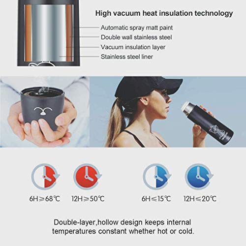 Komfortabel und gut zu verstauen. Größe (H x B): 16 x 7,6 cm. Klappbarer Griff. Die Edelstahl-Trinkflasche ist sehr bequem zu tragen oder für Ihre Tasche. Ideale Wahl für Zuhause, Schule, Reisen.. Die süße Katzen-Kaffeetasse ist aus ungiftigem BPA-freiem Kunststoff und lebensmittelechtem 18/8-Edelstahl gefertigt. Sie überträgt keine Gerüche auf Ihr nächstes Getränk.. Isolierung: Mit ihrer doppelwandigen vakuumisolierten Technologie bleiben Flüssigkeiten bis zu 6-8 Stunden heiß und bis zu 12-16 Stunden kalt.. Geschenk für Katzenliebhaber: Thermobecher mit süßem Katzendesign und niedlichem keramischen Edelstahllöffelsatz mit Katzenmotiv bietet Ihnen eine glücklichere Trink-Erfahrung. Ein perfektes Geschenk für Kinder, Frauen oder Katzenliebhaber.. Zum Schutz der Umwelt:Durch ihre beständige Qualität, Recycling-Material und dieselbe Größe wie Café-Größen reduziert diese süße Wasserflasche die Verschwendung von Papierbechern.