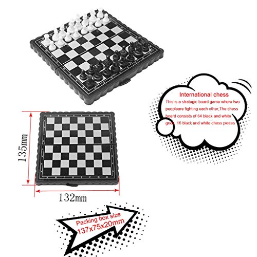 ?3 in 1 Schachspiel ?? Spiele Schach, Dame und Backgammon während du unterwegs bist. Wenn dir ein Spiel langweilig wird, kannst du das Brett umdrehen, um ein neues Spiel zu beginnen, ein Muss für lange Roadtrips. Es ist auch ein großartiges Schachspiel für den Heimgebrauch!. ?Portabel Schach?? Erweiterte Größe: 13.5x13.2cm. Perfekte Größe für das Spielen unterwegs oder im Bett, aber groß genug, dass sie leicht zu greifen und genau zu platzieren, ultra-portable!. ?Magnetisches Schachspiel ?? Sowohl das Spielbrett als auch die Spielsteine sind magnetisch, die Magnete sind nicht sehr stark, aber genug, um alle Teile an Ort und Stelle zu halten, um sie sanft zu schütteln oder zu bewegen. Die Schachfigur verfügt über eine eingebaute Flanschbeflockung und Stille. Durch die eingebauten Magnete können die Teile für ein besseres Spielgefühl am Board haften.. ?Lock design,Komfortabel für lagerung ?? Spezielles Schlossdesign angenommen, die Schachfiguren können in der Box aufbewahrt werden, die einfach geöffnet und geschlossen werden kann; Wird mit 3 wiederverwendbaren Schachaufbewahrungsbeuteln geliefert, die die Schachfiguren vor leichtem Verlust schützen.. ?Schachspiel hochwertig für Geschenk ?? Das 3 in 1 Schachspiel ist das optimale Geschenk für jeden. Auch als schöne Dekoration eignet sich das qualitativ hochwertige Spiel besonders. Ob für Kinder, Anfänger oder für Fortgeschrittene, das Schachspiel ist ein tolles Geschenk für jeden!