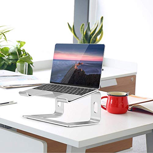 ANPASSUNG FÜR JEDEN LAPTOP 10" ~ 15,6" - Der Laptopständer passt auf alle Laptops wie MacBook Pro 13/15/2018/2017/2016, MacBook Air, Dell Inspiron XPS, HP, ASUS, Chromebook, Lenovo ThinkPad und viele andere Notebooks und Computer.. TUDYING & WORKING NOCH KOMFORTABLER - Dieser ständer laptop kann Ihnen helfen, Nacken- und Rückenschmerzen zu reduzieren, während Sie studieren, arbeiten, lesen oder Unterhaltung genießen. Darüber hinaus ist der Ständer abnehmbar und einfach ohne Werkzeug zu installieren, wodurch Sie viel Zeit sparen.. BESSER KÜHLEN & DESKTOP ORGANISIERT HALTEN - Der notebook stand besteht aus hochwertigem Aluminium. Der Vorwärtswinkel und das offene Design sorgen für gute Belüftung und Luftzirkulation, um ein Überhitzen des Laptops zu verhindern. Sie können Ihre Büroartikel auch unter dem Notebook ständer organisieren. Funktioniert am besten mit einer drahtlosen Tastatur und Maus.. EINFACHE REINIGUNG UND LAGERUNG - Die glatte, harte Oberfläche ist leicht sauber zu halten, während Sie essen oder arbeiten. Schützt Ihren Computer auch vor Kratzern. Platzsparendes Design Zum einfachen und schnellen Verstauen oder Mitnehmen in Ihrem Koffer.. STABIL & TRAGBAR - Der Bürocomputerständer besteht vollständig aus einer verdickten Aluminiumlegierung, sodass der Ständer stabiler und weniger wackelig ist. Das Gummi an den Händen des Halters haftet fest und sorgt dafür, dass Ihr Laptop auf dem Ständer steht. Und die Gummifüße verhindern, dass der Ständer auf Ihrem Desktop verrutscht.