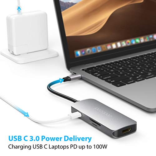 [Vielseitig kompatibel] Geeignet für verschiedene Laptops/Tablets mit Typ-C Anschluss, wie z.B. MacBook /MacBook Pro /MacBook Air 2018/2019/2020 , Google Chromebook Pixel, DELL XPS13, Lenovo Yoga 900, Samsung Galaxy S8/S9, HUAWEI Mate 30/ P30, LG G5 und mehr weiter.. [Ein-Hub-für-Alles] Dieser typ-c usb hub kann mehr als die meisten integrierten Multifunktions USB C Adapter am Markt. Er nimmt alles, was Sie wollen und brauchen und in Erwögung ziehen, einschlie lich 1x HDMI Port, 1x SD-Kartenleser, 1x TF-Kartenleser, 3 USB 3.0 Ports, 1x Power Delivery Port.. [4K HDMI Video Ausgang] Der HDMI hub adapter gibt Videodaten mit einer Auflösung von bis zu 3840x2160@30Hz aus, unterstützt auch 1080p/23.98/24/50/59.94/60HZ, 1080i/50/59.94 /60HZ, 720p/50/59.94/60HZ etc.. [Freier Zugang & Schneller Datentransfer] 3 x USB 3.0 Ports bieten eine schnelle Übertragungsrate von bis zu 5Gbps. Schneller Zugriff auf jede Datei von Ihrem USB-Stick, Telefon, SD-Karte, Micro-SD-Karte, Connect-Tastatur, Maus. Der Betrieb ist einfacher als je zuvor.. [Qualität Garantie] CE, FCC und RoHS zertifiziert. dodocool usb-c adapter verfügen über stabile Leistung, Temperaturschutz, Anti-Überstrom und Kurzschlussschutz. Nicht zuletzt gewährleisten wir unserem Kunden eine 18-Monate-Garantie.