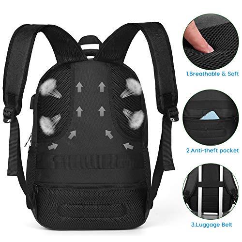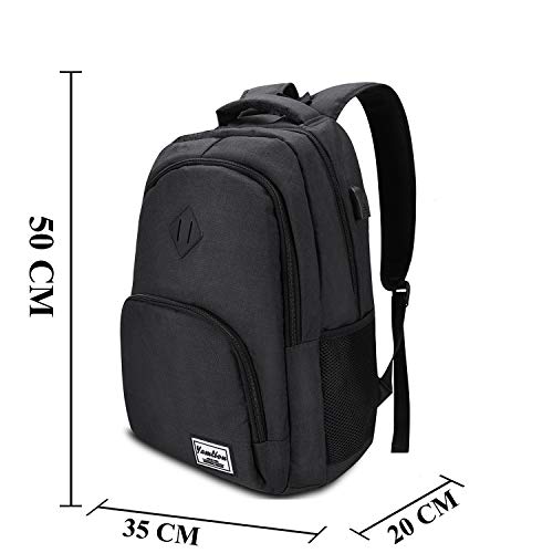 ?Großes Volumen?3 unabhängige Partitionen, 11 Ablagefächer, 35L Fassungsvermögen. Rucksack mit Laptop-Fach passend für 15,6 Zoll Laptop sowie 15-Zoll, 14 Zoll und 13 Zoll Macbook, Laptop oder Notebook.. ?Wasserabweisender Stoff?Der Rucksack ist aus hochwertigem, wasserabweisend beschichtetem 600D Oxford Stoff. Leichter Regen sind somit kein Problem für diesen Premium Rucksack.. ?USB-Anschluss?Mit dem integriertem USB-Ladegerät außen und dem integriertem Ladekabel im Inneren, bietet dieser USB Rucksack Ihnen eine bequeme Möglichkeit Ihr Smartphone beim Tragen aufzuladen.. ?Atmungsaktiv und Komfortabel?Extrem hoher Tragekomfort dank dicker, aber trotzdem weicher Multi-Panel belüfteter Polsterung. Die ergonomischen, Atmungsaktiven und verstellbaren Schultergurte lindern die Belastung auf den Schultern auch bei längerem tragen. Mach Schluss mit alten Schulranzen und gönn deinem Körper was Gutes.. ?Vielseitig?Der Laptop Rucksack mit USB Anschluss und Laptopfach ist ideal für den täglichen Gebrauch. Egal ob in der Schule, Studium, Berufsschule, beim Einkaufen oder für Reisen. Durch sein schickes Design für Herren als auch für Frauen geeignet.
