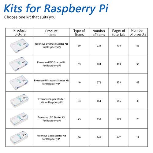 Freenove Ultimate Starter Kit für Raspberry Pi 4 B 3 B+ 400, 434-Seitige Detaillierte Tutorials, Python C Java Code, 223 Elemente, 57 Projekte, Lötfreies Steckbrett