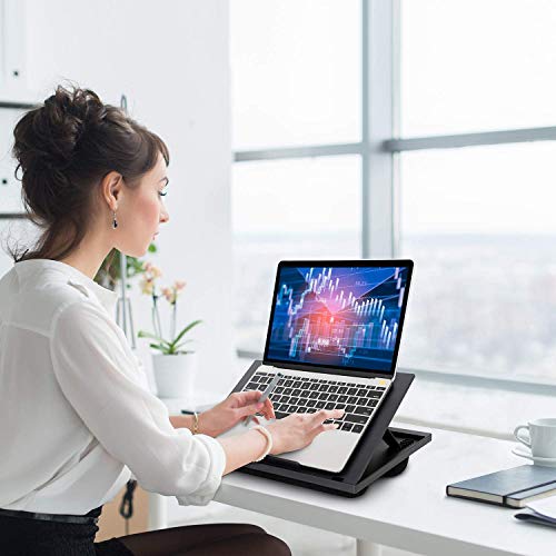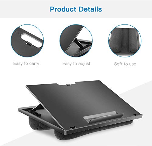Multifunktional & Tragbar - Die Laptop Unterlage kann in großem Umfang als Auto-Lapdesk, Arbeitstisch, Schreibtafel, Zeichenpult, Bettablagetisch usw. Verwendet werden. Das Laptop Kissen ist leicht und tragbar, sodass Sie es bequem bei sich tragen können, um bequem zu arbeiten, zu reisen oder sogar zu Hause für bett bleiben und bequemer Film- und Fernsehprogramme anzusehen. Einstellbar Auf Ergonomische Höhe - Der Laptop Ständer ist mit 8 einstellbaren Winkeln gut gestaltet und erfüllt damit alle Ihre Höhenanforderungen, die Sie je nach Situation leicht anpassen können. Damit können Sie den Bildschirm auf ein Optimales Betrachtungsniveau anzuheben, um Ihre Körperhaltung zu fixieren und Nacken-, Rücken- und Augenschmerzen zu lindern. Kompatibel & Stabil - Mit der Größe von 37.6 x 30cm kann die Laptopunterlage problemlos mit Laptops und Tablets von einer Größe bis zu 15,6" kompatibel sein. Dieser Laptopständer ist mit einem rutschfesten Streifen auf der Oberfläche des Beckens ausgestattet, der Ihre Bedenken hinsichtlich des Abrutschens des Laptops beim Anheben einer höheren Stufe beseitigt und Ihre Geräte perfekt schützt. Komfortabel für Knie - Aufgrund des einzigartigen Designs kann das Doppelkissen, die darunter angebracht sind, eine ausreichende Isolierung und einen ausreichenden Luftraum zwischen dem Knietablett und dem Schoß bieten, um zu verhindern, dass der Laptop Wärme an den Benutzer überträgt. Einfache Reinigung und Lagerung - Glatte, harte Oberflächen sind leicht sauber zu halten. Laptop Kissentablett besteht aus einem weichen Stoff und kann leicht mit einem feuchten Handtuch abgewischt werden. Das platzsparende Design hilft Ihnen, den Laptop Tisch schnell und einfach in eine flache Form zu falten, um es versteckt aufzubewahren oder in Ihrem Koffer zu reisen