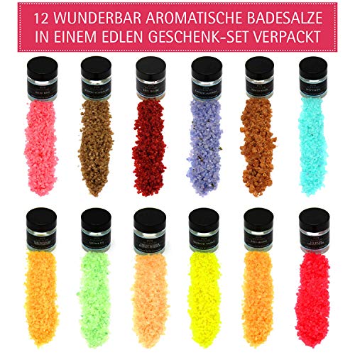 Hallingers 12er Badesalz-Geschenk-Set mit Totes Meer-Salzen (420g) - Männer-Wellness-Programm (Design-Karton) - zu Liebe & Hochzeit Adventskalender