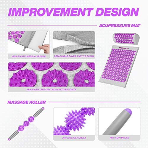 ????Wissenschaftliche Kunststoffplättchen Verteilung????Dieses akupressurmatte-set basiert auf der TCM mit 303 kunststoffplättchen mit insgesamt 8181 ergonomische massagepunkten, Macht die Anordnung von kunststoffplättchen dichter und die Kraft gleichmäßiger. Die Oberfläche besteht aus 100% natürlichem, hautfreundlichem Baumwollgewebe und das Innere aus umweltfreundlichem 18D-Schaumstoff mit hoher Dichte. Die kunststoffplättchen besteht aus ungiftigem ABS-Kunststoff, der sehr sicher ist.. ????Multi-Site-Physiotherapie????Sie können Rückenschmerzen und Nackenschmerzen entlasten, indem Sie auf akupressurmatten liegen. Das Sitzen auf akkupressurmatten wird verwendet, um den Druck auf die Hüftmuskulatur zu verringern, und das Stehen auf akupunkturmatte wird verwendet, um die Akupunkturpunkte an den Füßen zu stimulieren. Mit der zusätzlichen Massagerolle und zwei Massagering können Sie auch weitere Gliedmaßen und Finger massieren, um die Durchblutung des gesamten Körpers zu fördern.. ????Immer und überall verwenden????Die tägliche Nutzungsdauer von akupressurmatten wird schrittweise von 10 Minuten auf 45 Minuten erhöht und mit einem Schal oder dünner Kleidung bedeckt, um körperliche und geistige Entspannung und Verjüngung zu erreichen. Akupressurmatten ist leicht zu falten und kann zusammen mit Massageroller und Massagering in Einer Tragtasche platziert werden, was sehr bequem zu tragen und zu lagern ist. Ob im Auto, im Büro oder im Freien, Sie können problemlos Stress abbauen.. ????Maschinenwaschbarer Premium-Stoffbezug????Die äußere akupressurmatte, 100% natürliche und nebenwirkungsfreie Stoffhülle hat eine gute Fleckenbeständigkeit, ist langlebig und reißfest und lässt sich leicht zerlegen. Sie kann in einer Waschmaschine gewaschen werden. Da Kunststoffnägel andere Stoffe beschädigen können, müssen sie separat gewaschen werden. Gleichzeitig macht das spezielle Design fakirmatte und Kunststoffplatte während des Maschinenwaschvorgangs nicht leicht zu trennen.. ????Ausgezeichnete Geschenke und Kundendienst????Akupressurmatte ist das beste Geschenk für Familie, Freunde, Partner und sich selbst. Es lindert Körperschmerzen, beruhigt Körper und Geist und stärkt den Körper. Unsere Produkte wurden streng geprüft und haben ein Jahr Garantie. Wenn Sie Fragen zu akkupressurmatten haben Bei verwandten Fragen können Sie uns jederzeit kontaktieren und wir werden sie umgehend beantworten.