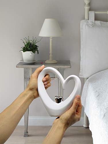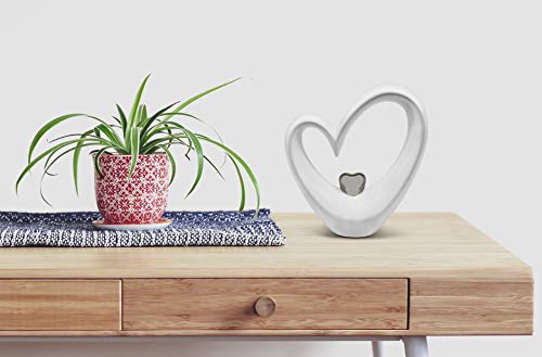 EINFACH SCHÖNE DEKO DIE AUCH IN JAHREN NOCH WIRKT – hochwertiger Deko-Artikel um einen besonderen Platz im Haus aufzuwerten; die klare und doch liebevolle Form des Doppelherzes strahlt Wärme und Geborgenheit aus und setzt damit einen Kontrast zum hektischen Alltag. JEDES HERZ IST EINZIGARTIG – durch die vielen manuellen Handarbeits-Schritte bei der Herstellung ist jede Figur ein Stück weit einzigartig; das bedeutet auch, dass bei der individuellen Anfertigung kleine Unebenheiten & geringfügige Farbabweichungen entstehen können - falls Sie Fehler an den Figuren bemerken, melden Sie sich bitte beim Verkäufer Kohlburg, wir kümmern uns schnell & unbürokratisch in Ihrem Sinne um das Problem. MIT SCHUTZ-NOPPEN – ein besonderer Zusatz sind die abnehmbaren Gummi-Noppen auf der Unterseite der Herzfigur; diese schützen Ihre Einrichtung vor Kratzern und sind somit ideal für Glas-Vitrine, Regal, Kommode, Deco-Tisch & Fensterbank. BESONDERES GESCHENK – die zeitlose Statue eignet sich besonders als dekorative Geschenk-Überraschung für einen lieben Menschen; auch als persönliches Präsent zum Hochzeitstag, Geburtstag oder Muttertag; schön im Verbund mit Blumen, Pflanzen & Vasen. DEKO-KLASSIKER DER MARKE FEINKNICK – die Herzskulptur hat eine Größe von 19 cm und passt wunderbar zu unseren anderen liebevollen Keramik-Figuren der Marke FeinKnick - schauen Sie gerne mal rein