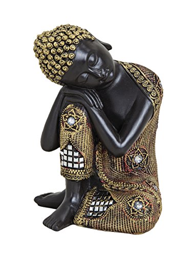 Schwarz-goldfarbene Buddha-Figur 17cm als Deko-Artikel für Haus & Garten | wetterfeste meditierende Buddha-Statue | moderne Deko-Skulptur als Wohn-Accessoire | ideal als Geschenk-Idee für Asien-Fans