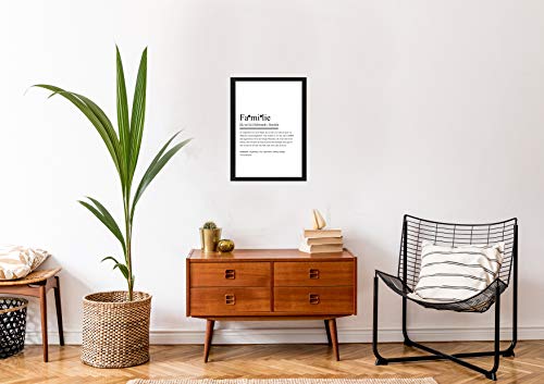 Hingucker: Unsere Definitionsposter sind eine originelle Wohndekoration für euer Wohnzimmer, Esszimmer, Küche oder WG. Sie geben sowohl gerahmt als auch ungerahmt eine stilvolle Zimmergestaltung ab.. Familie: Eine Familie hält zusammen und man ist füreinander da, auch wenn man nicht immer zusammen ist. Dieser Spruch erklärt allen was Familie bedeutet und bringt jeden zum Lächeln und die schönsten Gedanken und Erlebnisse kommen zum Vorschein. Schwarzer Bilderrahmen: Der Urhome Kunstdruck wird bereits fertig gerahmt geliefert und kann aufgehangen oder hingestellt werden.. Ideal als Geschenk: Die Kunstdrucke sind eine schöne Geschenkidee und geben beim Verschenken einen persönlichen Touch. Hier ist für jede Person die du liebst, magst oder der du einfach ein Lächeln aufs Gesicht zaubern magst etwas dabei. Perfekt für Familie, beste Freunde, Bekannte, Kollegen zum Geburtstag, Weihnachten, Muttertag, Vatertag, Hochzeit.. Lieferumfang: 1x hochauflösendes gedrucktes Poster mit der Wortdefinition Familie inkl. Bilderrahmen im Format DIN A4 (21 x 29,7 cm) auf Fine Art Künstlerpapier 160g/m² (Weiß)