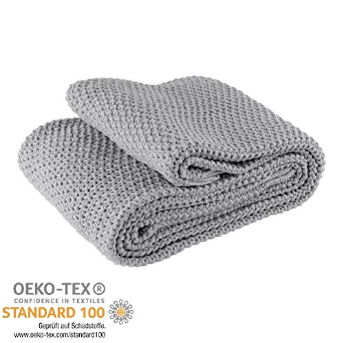 Kuscheldecke Strick 140x190 cm grau - Strickdecke OekoTex warme weiche Decke Herbst-Winter-Kollektion 20/21 Geschenk