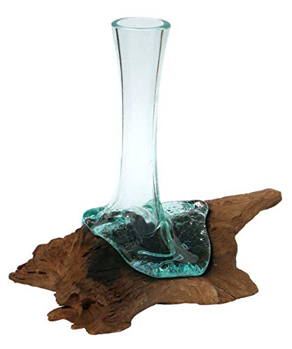 B-Ware mit kleinen Abplatzern am Glasrand und oder Kratzern, Luftblasen im Glas. Geschenkidee Einzigartige Deko Gamal Wurzelholz Glasvase von Bali Teakholz Teak Holz Glas Vase. Vasen werden von den Glasbläsern direkt auf die Wurzelholzstücke aufgeblasen. Glas und Holz passen so perfekt und harmonisch zueinander.. Zum Reinigen kann das Glasteil problemlos abgenommen und wieder aufgesteckt werden. Kleine Luft- oder Partikeleischlüsse im Glas sind durch die Handarbeit herstellungsbedingt.. Größe ca. 30-35 cm hoch Gewicht ca. 1,2-1,5 kg Da es sich um Naturprodukte und Handarbeit handelt, kommt es zu Abweichungen in Form, Farbe, Größe, Maserung und Gewicht.. ACHTUNG! Dies sind Beispielfotos und nicht direkt bestellbare Modelle.