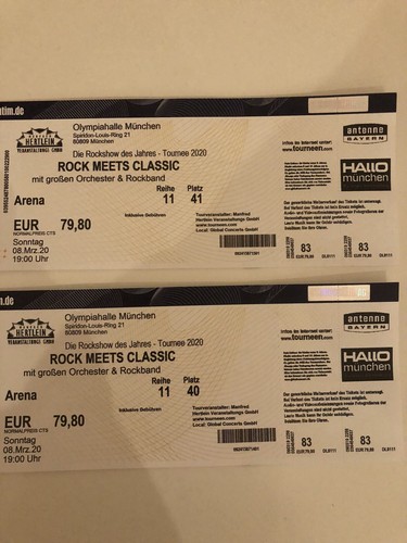 Rock Meets Classic in München 08.03.2020. Versand mit Deutsche Post Brief Standard.